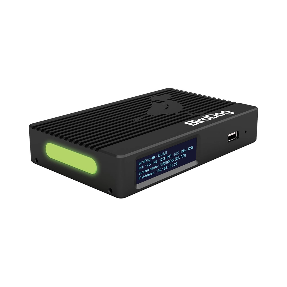 BirdDog’un özel NDI silikon çipine dayanan BirdDog 4K Quad NDI Encoder/Decoder, UHD 4K/60 video girişine kadar destek sağlar ve tam bant genişliğinde I-frame sıkıştırma ile NDI ağlarında dağıtım yapar. Bu kompakt cihaz, uçak sınıfı alüminyum kasaya sahiptir ve dört adet 12G-SDI seçilebilir giriş/çıkış sunar. Ayrıca HDMI 2.0 çıkışı mevcuttur, ancak şu anda beklenen bir yazılım güncellemesine kadar pasif durumdadır. Çıkış aktif olduğunda, yerleşik çapraz dönüştürücü sayesinde bir SDI girişini HDMI portu üzerinden döngüye alabilirsiniz.