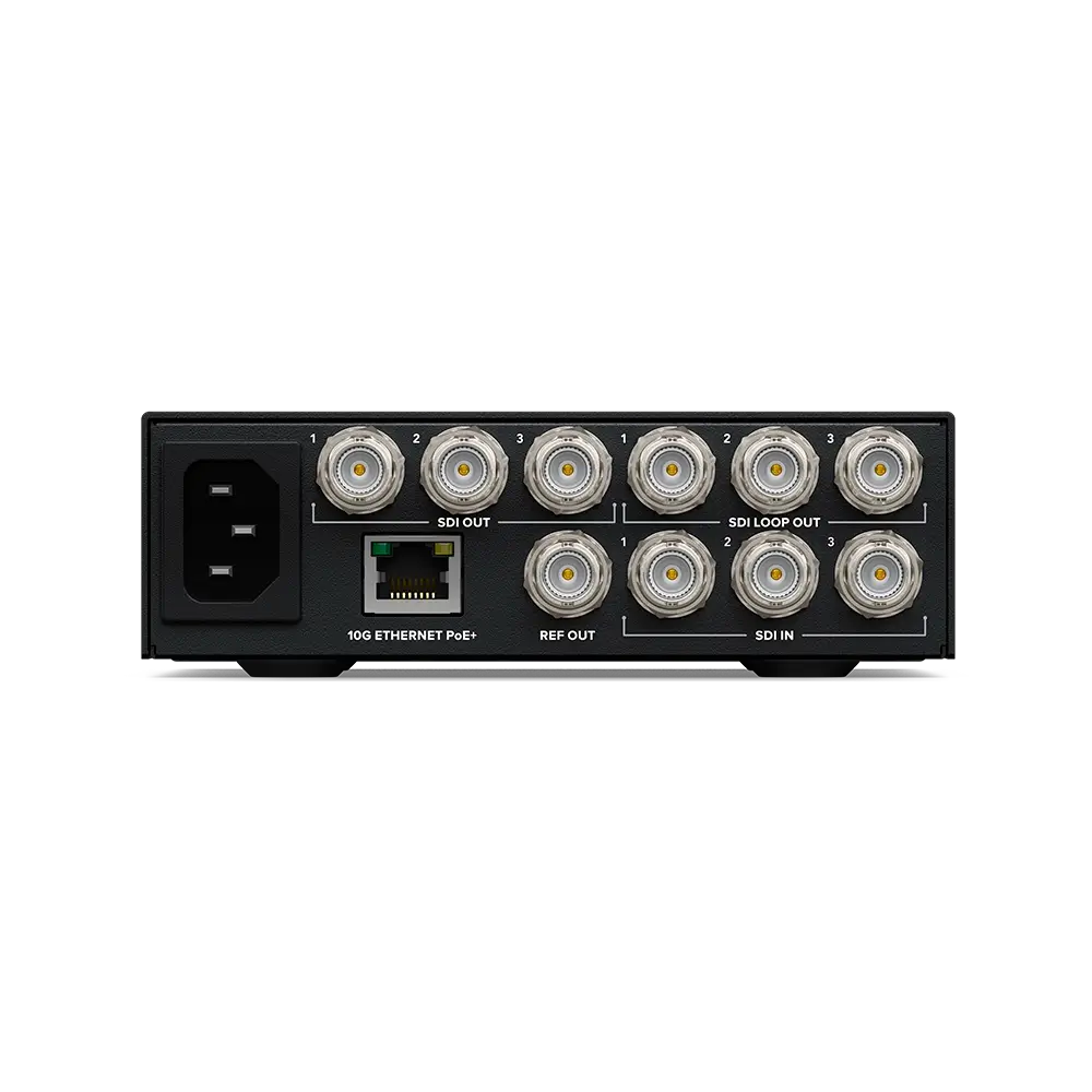 Blackmagic Design’in 2110 IP Converter 3X3G modeli, üç ayrı 3G-SDI cihazın sinyallerini SMPTE-2110 IP video sistemlerine dönüştürmek için tasarlanmış profesyonel bir dönüştürücüdür. 10G Ethernet bağlantısı sayesinde aynı anda üç farklı video kanalını, gömülü ses sinyalleriyle birlikte IP üzerinden iletebilir. Kompakt rackmount tasarımıyla stüdyo veya yayın sistemlerine kolayca entegre edilebilir.