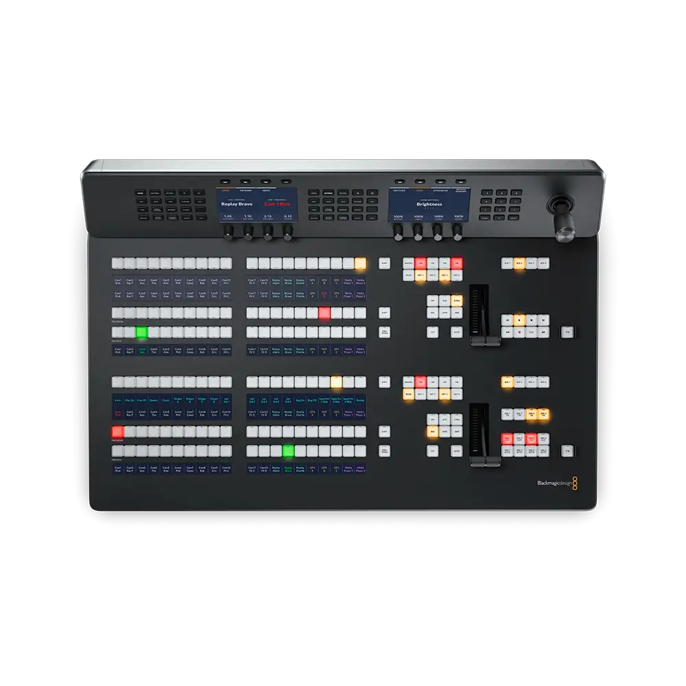 ATEM 2 M/E Advanced Panel, Blackmagic Design’in profesyonel ATEM switcher’larıyla uyumlu, önceki panel modellerine göre geliştirilmiş ileri düzey bir kontrol panelidir. Yüksek kaliteli butonlar, düğmeler, fader barlar ve 3 eksenli joystick ile paneli tam ihtiyacınıza göre özelleştirebilirsiniz.