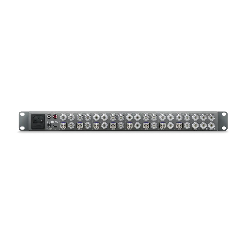 - Cihaz, tüm SD, HD ve Ultra HD formatları için 12G-SDI desteği sunar ve 2160p60’a kadar çözünürlükleri destekler. Her kamera için BNC bağlantıları sağlar ve gerektiğinde kamera mesafelerini uzatmak için optik fiber SFP modülü eklemek amacıyla optik fiber soketi bulunur.