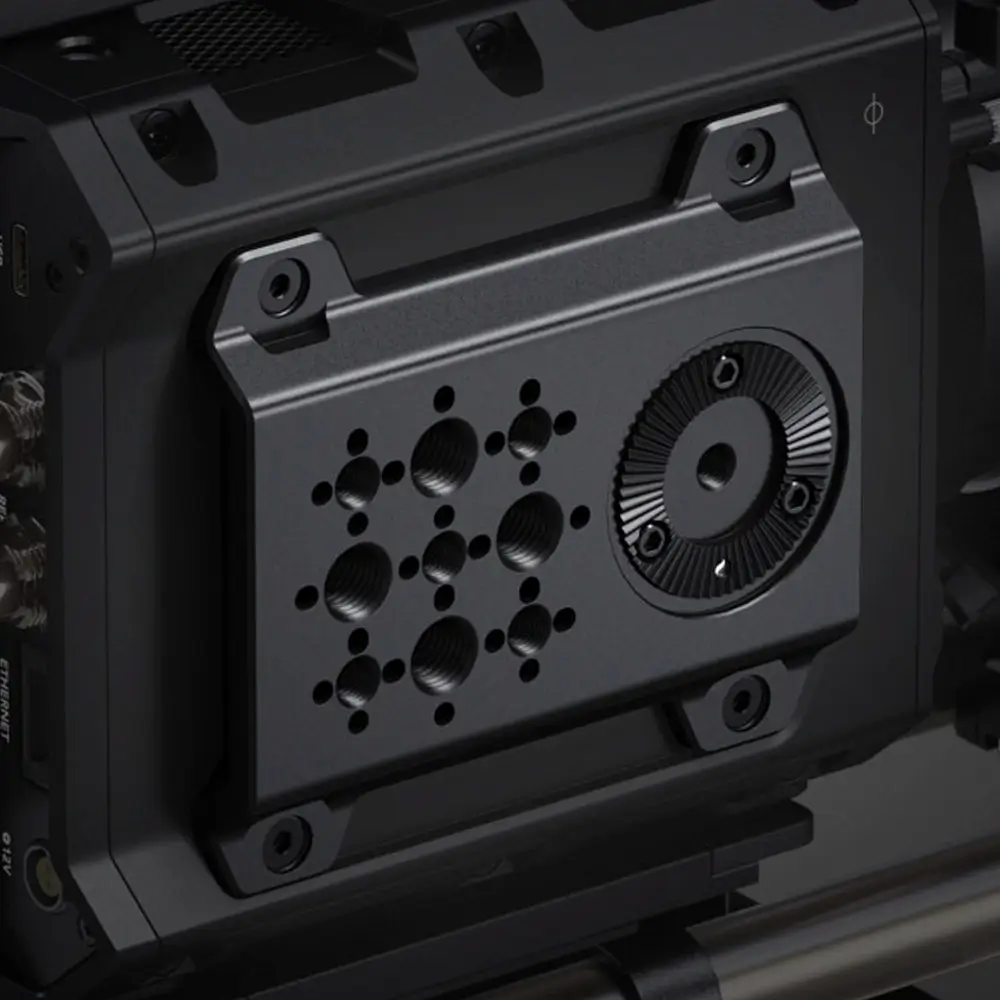 PYXIS 6K kameranıza aksesuar montaj kabiliyeti ekleyin: Blackmagic Design Rosette Plate, PYXIS kamera gövdesiyle aynı uçak sınıfı alüminyumdan üretilmiştir. Bu çok yönlü plaka, el tutamakları veya uzatma kolları gibi aksesuarların montajını kolaylaştıran rosette montaj seçeneği sunar. Ayrıca, mikrofonlar, braketler ve diğer çeşitli aksesuarları eklemek için beş adet 1/4″-20 ve dört adet 3/8″-16 dişli montaj deliğine sahiptir.