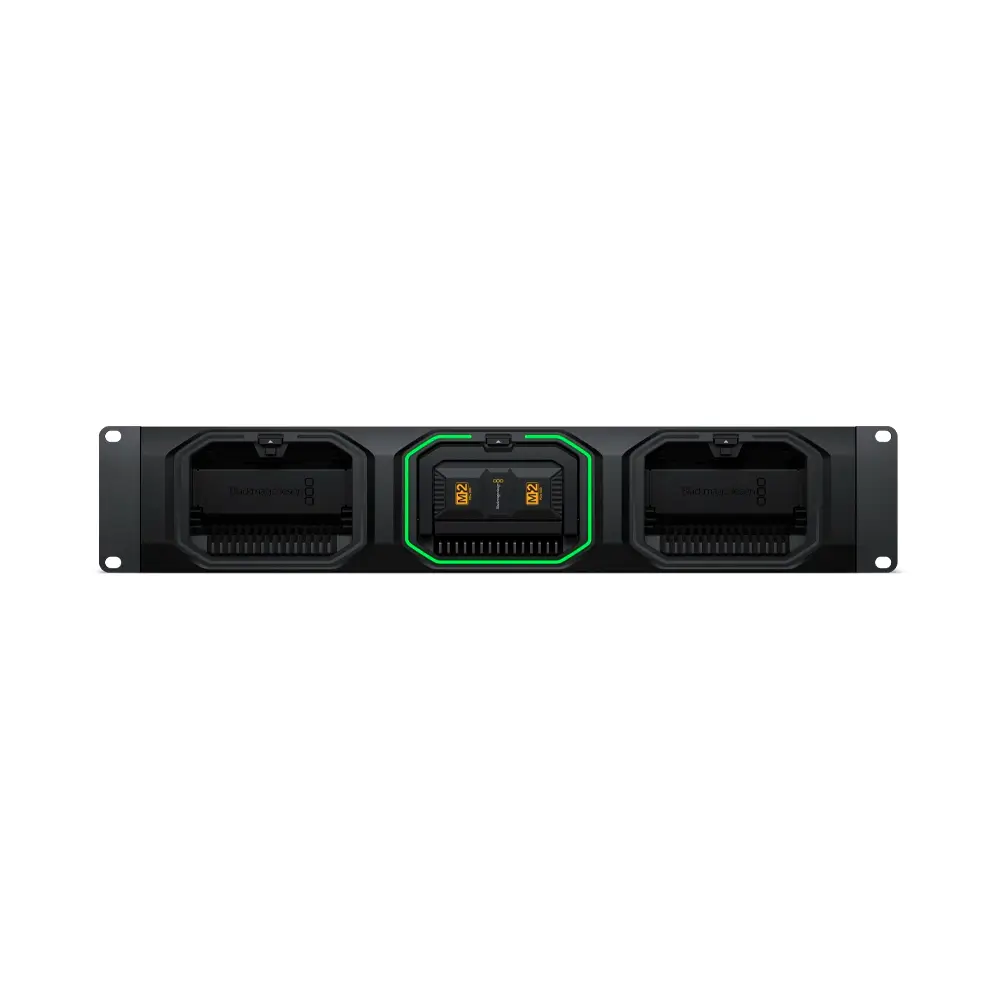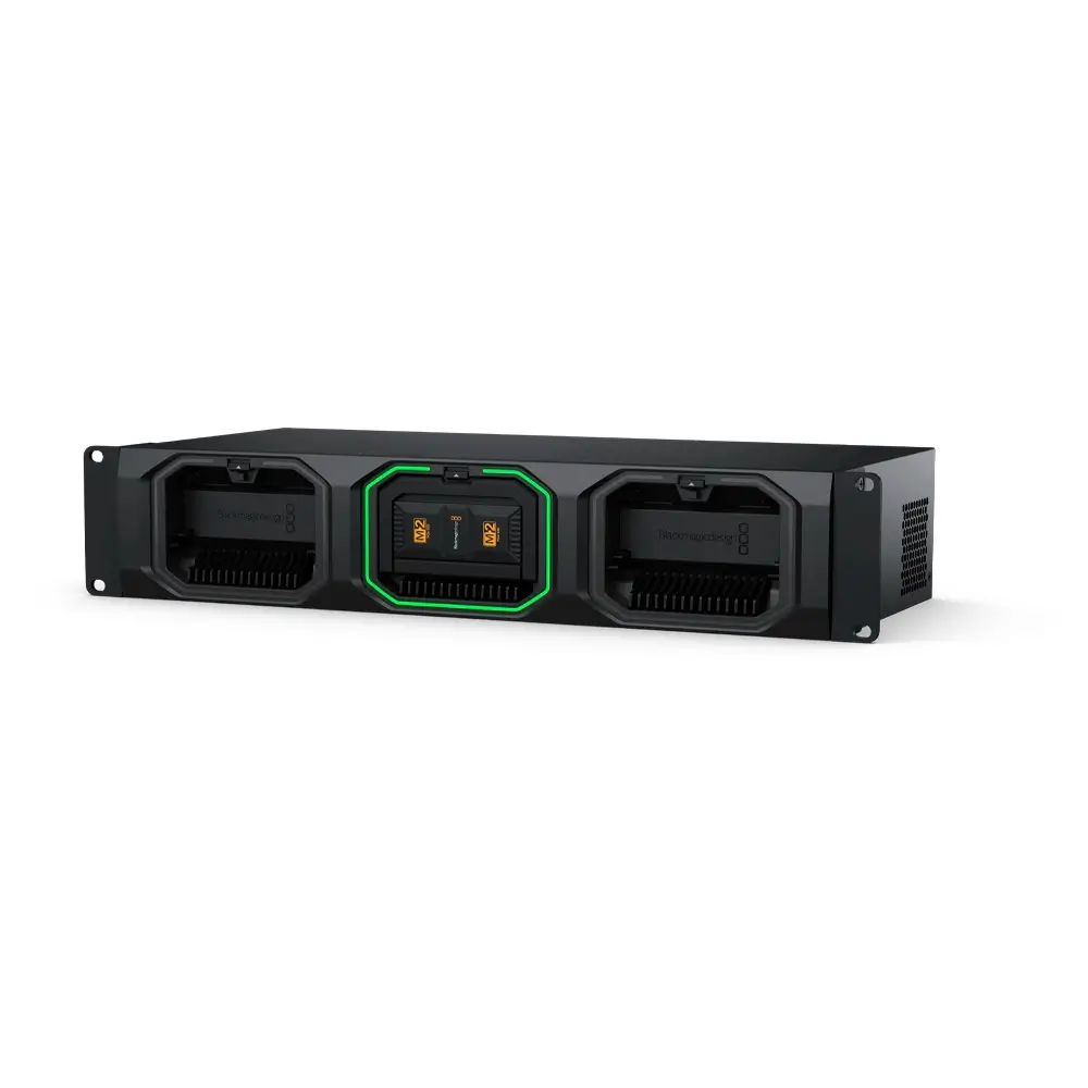 Birden fazla URSA Cine kameradan gelen medyaya yüksek hızlı erişim için üç adet Blackmagic Media Module takılabilir.