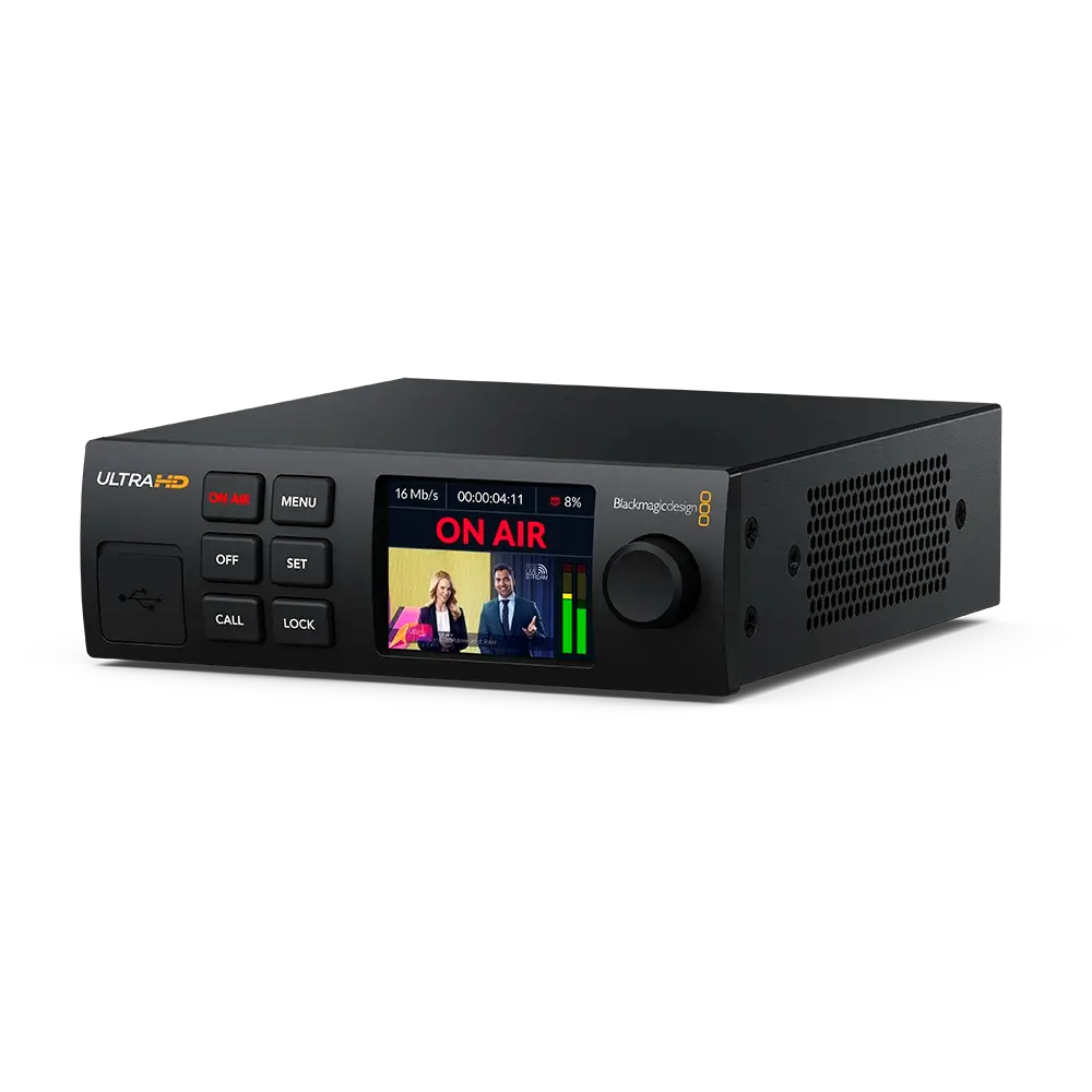 Güçlü ve bağımsız Blackmagic Design Streaming Encoder 4K, H.264 veya H.265 formatlarında yayın yapabilir ve SRT veya RTMP üzerinden doğrudan akış desteği sunar. Facebook, Twitch, YouTube, Twitter, Restream.IO, Vimeo, BoxCast, Castr, AfreecaTV, Bilibili, DouYu, Weibo, Zoom, Skype, Microsoft Teams, QuickTime Player, FaceTime, OBS Studio, Open Broadcaster, VLC, Wirecast Play ve Wowza Streaming Engine gibi çok sayıda uyumlu hizmet ve yazılım ile çalışabilir. Kullanıcılar, dahili RJ45 Ethernet portu üzerinden 10/100/1000BASE-T desteği ile yayın yapabilir veya USB-C üzerinden yüksek hızlı 5G ve 4G telefonlara bağlanabilir.