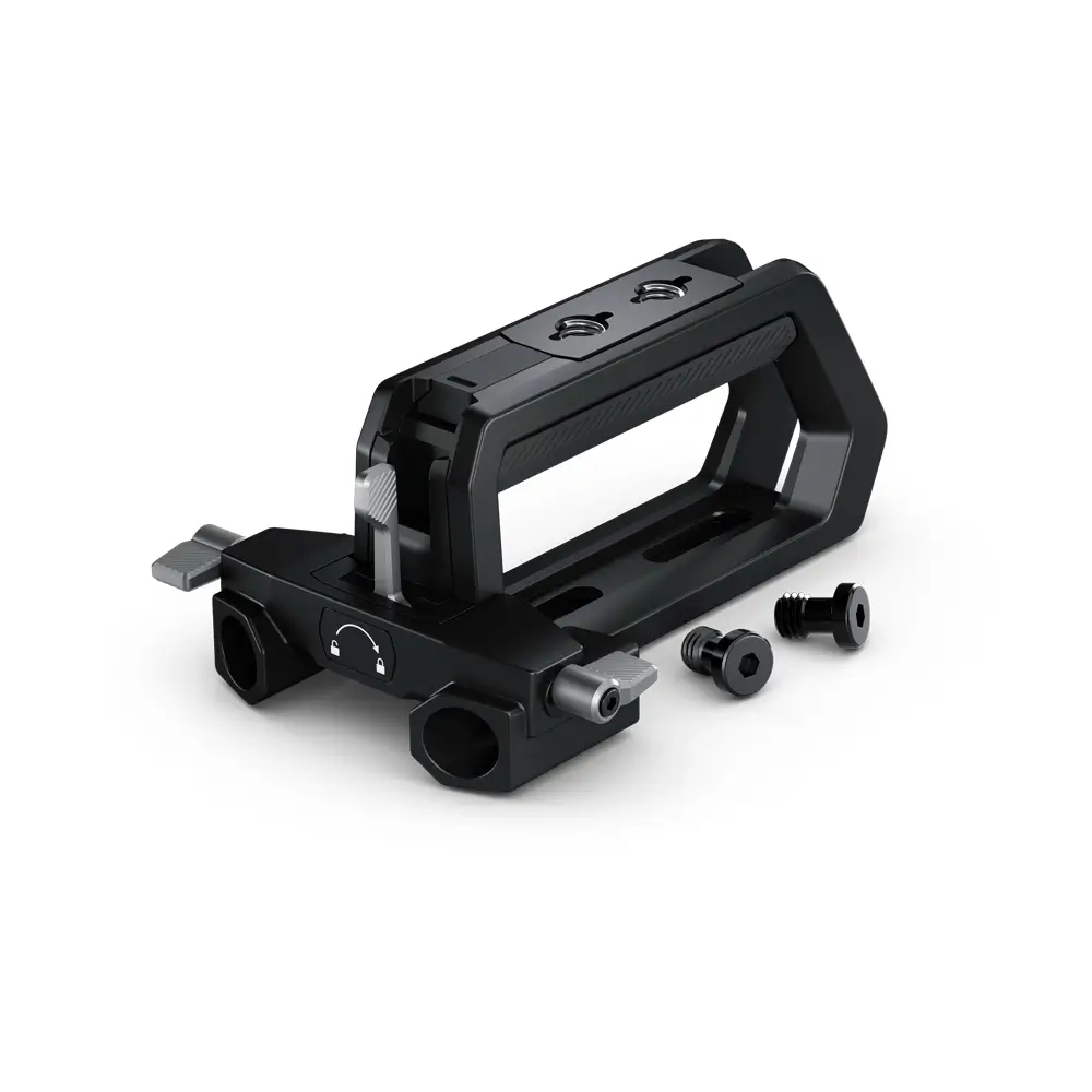 Blackmagic Design’in URSA Cine Top Handle aparatı, URSA Cine kameranızın üst kısmına monte edilir ve kameranızı güvenli bir şekilde taşımanız için ek bir tutma kolu sağlar. Tutma kolunun üst kısmında, URSA Cine EVF gibi ek aksesuarları entegre edebilmeniz için 1/4″-20 montaj vidaları bulunur. Top handle, kameranızı rahatça taşımanızı sağlamakla kalmaz, aynı zamanda düşük açıdan çekim yaparken kameranızı sabit tutmanıza da yardımcı olur.