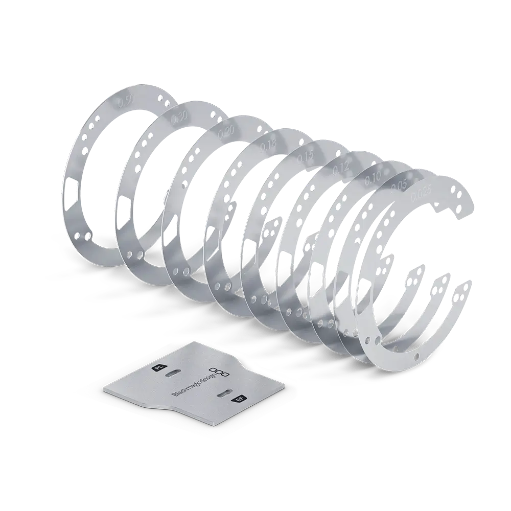 Kit, dokuz adet şim (ayarlama pulu) ve bir bölme aracından (baffle tool) oluşur. Ana işlevi şudur: