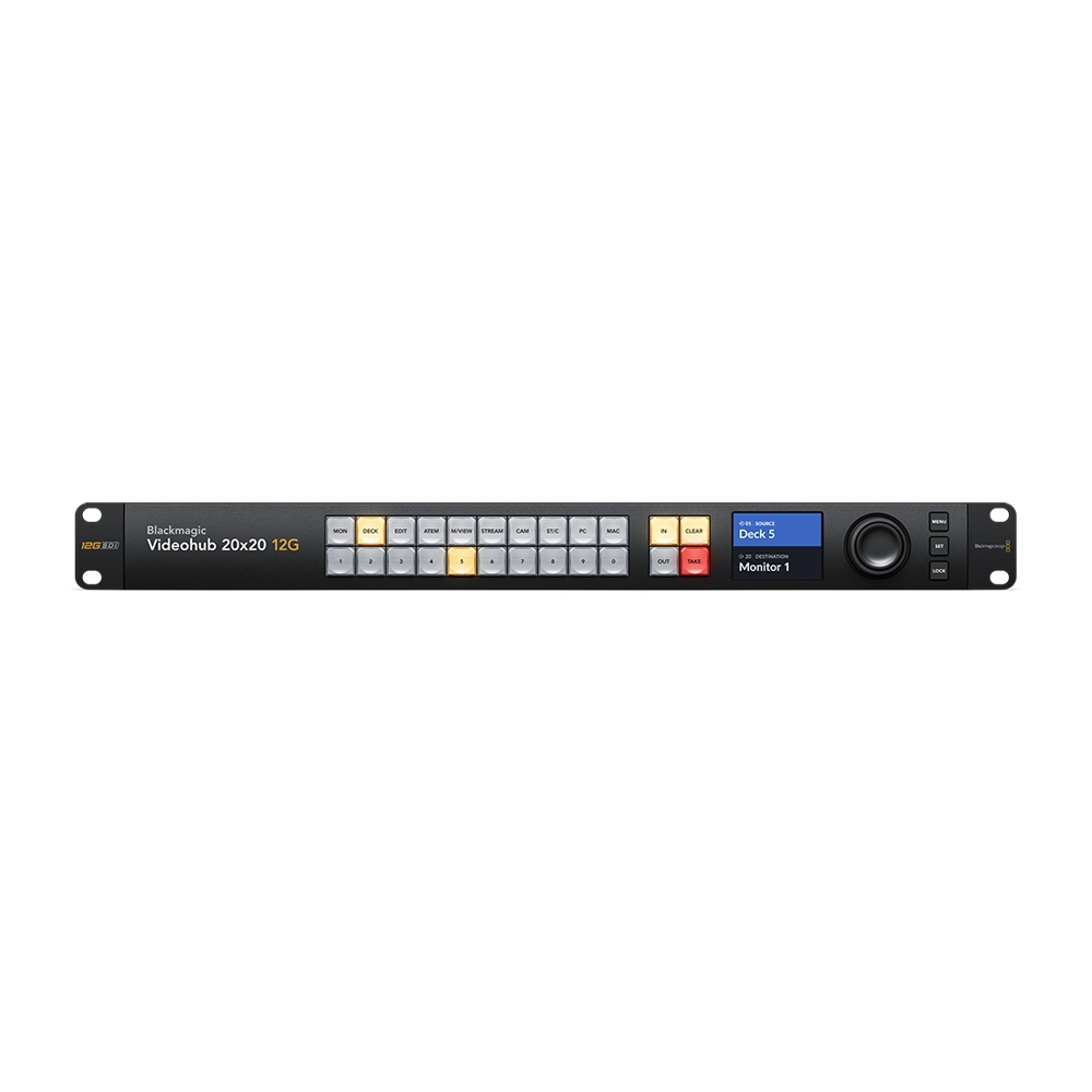 Farklı video formatlarını destekleyen Videohub 20×20 12G Zero-Latency Video Router, Blackmagic Design tarafından geliştirilen gelişmiş bir yönlendirici çözümüdür. Bu router, SD, HD, UHD 4K ve DCI 4K videoları herhangi bir kombinasyonla yönlendirebilmeniz için 20 adet 12G-SDI girişi ve 20 adet 12G-SDI çıkışı sunar. Videohub 20×20 12G, tüm SDI kablolarınızı tek bir merkezde toplar ve böylece herhangi bir video girişini herhangi bir çıkışa, hatta tek bir girişten birden fazla çıkışa yönlendirebilirsiniz. Karmaşık kablo kümeleri ve diyagramlara gerek kalmaz. Bu esnek cihaz, birden fazla HyperDeck kaydediciyle yedekleme kayıtları yapmak, videoyu birden fazla yayın işlemcisine yönlendirmek veya ATEM switcher’lara ekstra giriş eklemek için kullanılabilir.