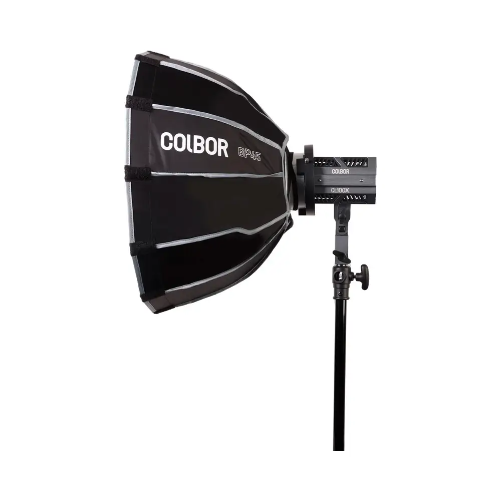 COLBOR BP45, 45 cm çapında Parabolik Softbox olup, grid ve Bowens montajı ile birlikte gelir. CL60, CL60M, CL60R, CL100X ve CL100XM LED stüdyo ışıklarının ışığını yumuşatmak için idealdir. Ayrıca ışığın saçılmasını azaltan ve yönünü kontrol etmeye yardımcı olan kumaş bir grid içerir. Saklama ve taşıma için bir taşıma çantası da dahildir.