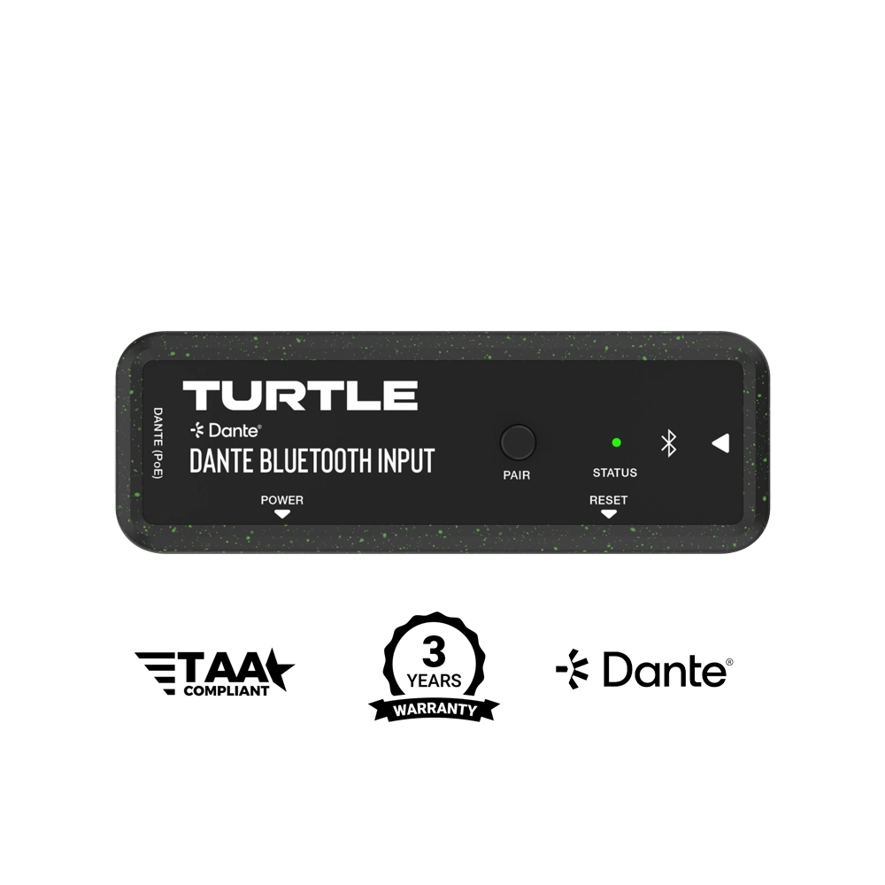 Ağ tabanlı ses sistemlerinde hassasiyet kritiktir ve Audinate’in Dante teknolojisi eşsiz senkronizasyon ve ultra düşük gecikme sunar. Gelişmiş Precision Time Protocol (PTP) ile Dante, her ses paketinin tam zamanında ulaşmasını sağlar, ses kalitesini korur ve jitter’i ortadan kaldırır. Turtle AV adaptörleri, gerçek Dante Ultimo çipseti ile güçlendirilmiş olup, tüm Dante uyumlu cihazlarla sorunsuz uyumluluk ve tam birlikte çalışabilirlik sunar; canlı performanslardan karmaşık yayın ortamlarına kadar profesyonel düzeyde kusursuz ses sağlar.