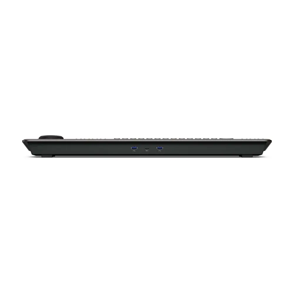 Klavye, profesyonel kullanıcı geri bildirimleri dikkate alınarak geliştirilmiştir; bazı tuşların üzerindeki boşluklar dokunsal tanıma sağlar.
