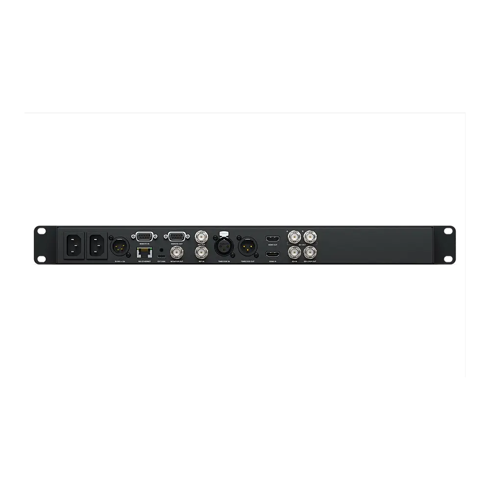 Cihaz, 1 RU rack-mount tasarıma sahiptir ve entegre rack kulaklıkları ile birlikte gelir. Ön panelde aydınlatmalı butonlar, yüksek kaliteli jog/shuttle tekerleği, dahili hoparlör, kulaklık çıkışı ve canlı video önizleme sağlayan LCD ekran bulunur. RS-422 kontrol desteği, harici cihazlardan yönetim sağlar. USB-C portu üzerinden harici disklere doğrudan kayıt yapılabilir veya bilgisayara bağlanarak webcam video kaynağı gibi kullanılabilir.