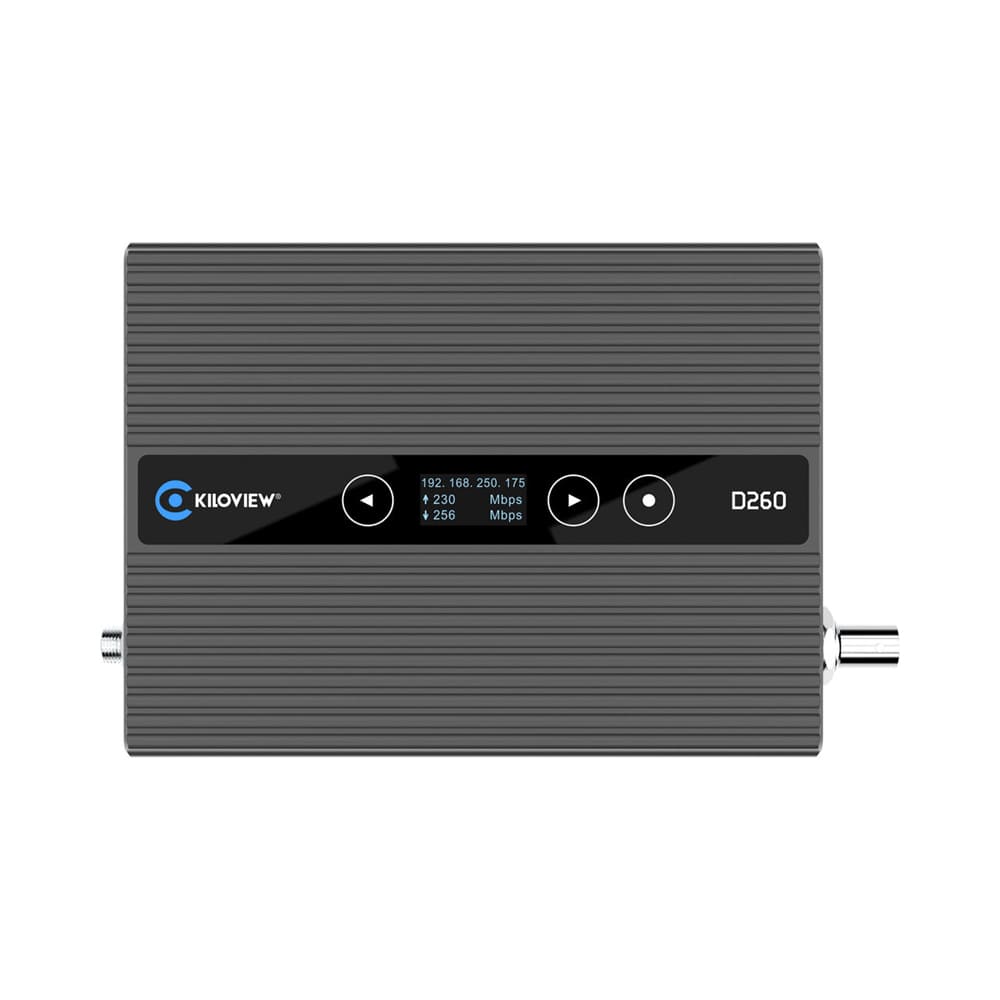 D260, Kiloview’in en yeni H.265 uyumlu 1 x 3G-SDI + 2 x HDMI çıkışlı dekoderidir. Önceki modelimiz DC230’un sunduğu özellikleri geliştirerek daha yüksek çözümleme (decode) performansı, ek bağlantı portları, daha fazla protokol desteği ve yeni bir LCD ekran sunar. Düşük maliyetli, tek bir cihaz içinde ihtiyacınız olan tüm çözümleme özelliklerini barındırır.