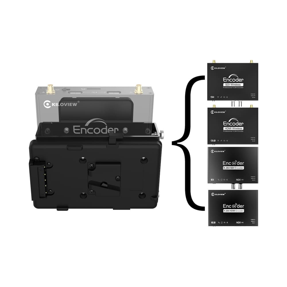 V-mount kiti, büyük kameraların arka kısmı için tasarlanmıştır. V-port bataryaya bağlanır ve E/G serisi encoder’lara sadece birkaç dakika içinde kolayca takılabilir. E/G serisi için güç, D-Tap soketinden enerji sağlayan özel tasarlanmış D-Tap kablosu ile sağlanır.