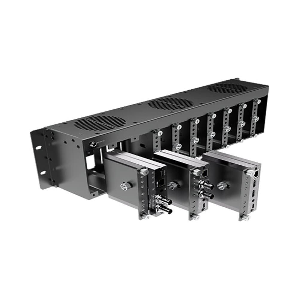 NDI RN03 montaj çerçevesi, şık ve esnek bir yapılandırma sunar. N3, N30, N4 ve N40 gibi farklı modellerle karışık şekilde, 10 adede kadar NDI High Bandwidth video kodlayıcı/çözücü cihazı entegre edebilir.