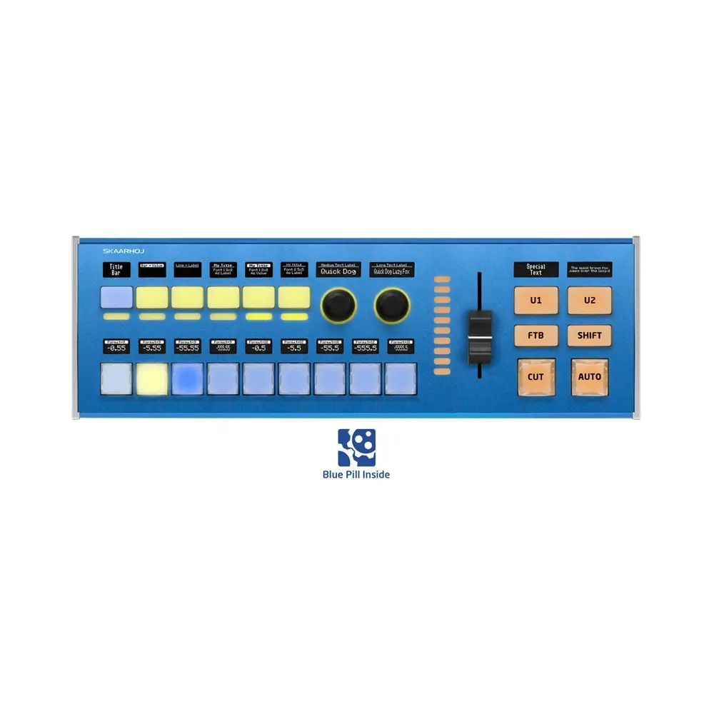 SKAARHOJ Live Fly with Blue Pill and NKK Buttons ile sekize kadar kamerayı kontrol edebileceğiniz prodüksiyonlarınızı yönetin. Bu profesyonel orta boy kontrol ünitesinin arayüzü; OLED ekranlı dokuz programlanabilir dört yönlü buton, RGB çok seviyeli metering LED’li ve OLED ekranlı altı dört yönlü ses butonu, OLED ekranlı iki encoder düğmesi, RGB LED barlı geçiş fader’ı ve çok seviyeli shift ile kullanıcı tuşları ve iki OLED ekranlı ME bölümü içerir. Live Fly kontrol ünitesine entegre edilen Blue Pill donanımı, skaarOS kontrolü ile birlikte gelir.