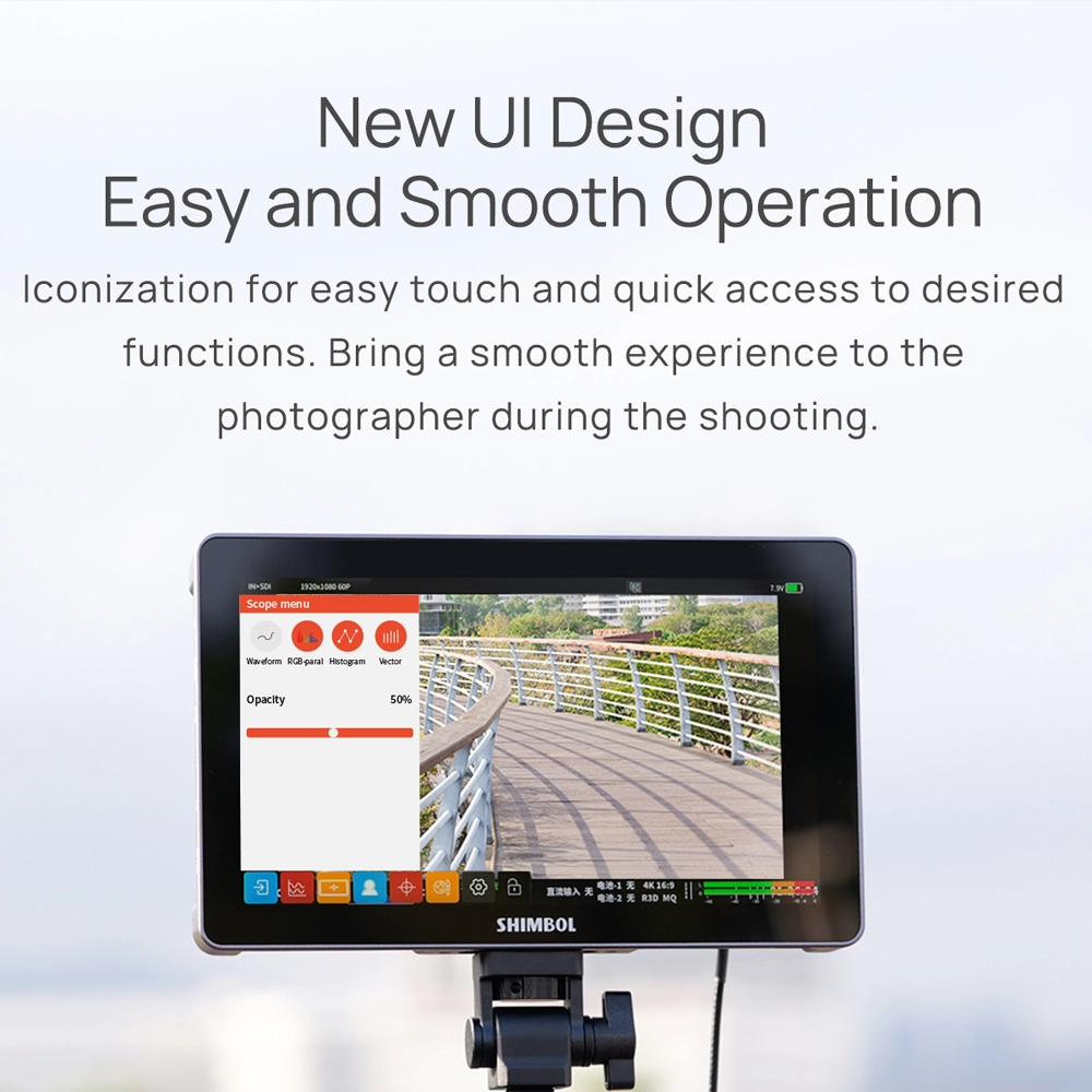 Kameranızı profesyonel izleme araçlarıyla güçlendirin: Shimbol M7 7″ Dokunmatik 4K HDMI/3G-SDI Video Monitör ile 3D LUT çıkışı elde edin. Bu ultra parlak 7″ dokunmatik ekran, 1920 × 1080 çözünürlük, 2000 cd/m² parlaklık ve HDMI üzerinden UHD 4K30’a kadar veya 3G-SDI üzerinden 1080p’ye kadar giriş/çıkış desteği sunar. Monitör, stüdyo veya dış mekan çekimlerinde dayanacak şekilde tam alüminyum gövdeye sahiptir.