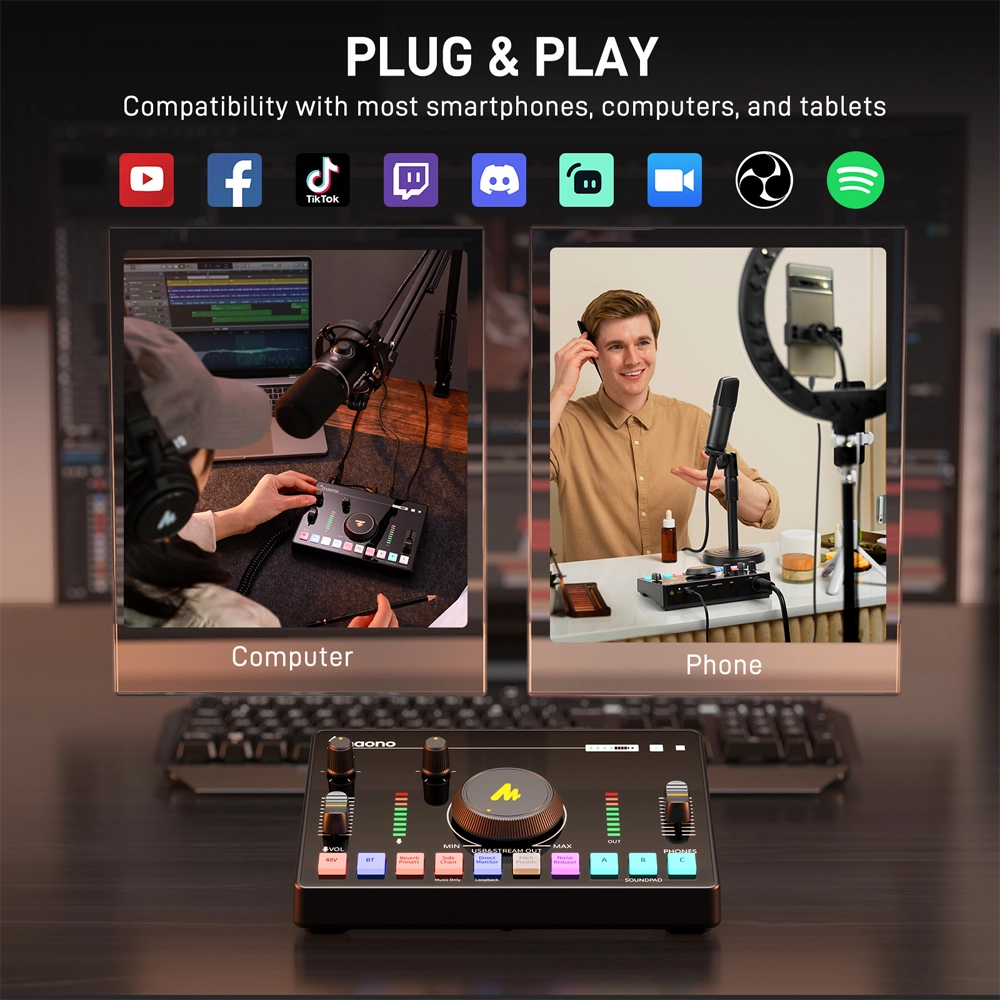 [HEPSİ BİR ARADA VE KOLAY KULLANIM]: Taşınabilir AMC2 NEO Ses Arabirimi, tek kişilik podcast prodüksiyonları için mükemmeldir. Mikrofonunuzu XLR/6.35mm arayüzü ile bağlayın, AUX arayüzünü kullanarak telefonunuzdan arka plan müziği çalın ve STREAM OUT çıkışı üzerinden doğrudan telefonunuza kayıt yapın. Veya bilgisayara USB-C bağlantı noktası üzerinden bağlanın ve doğrudan kayıt yapın. Kulaklık arayüzüyle sesinizi gerçek zamanlı takip edin.
