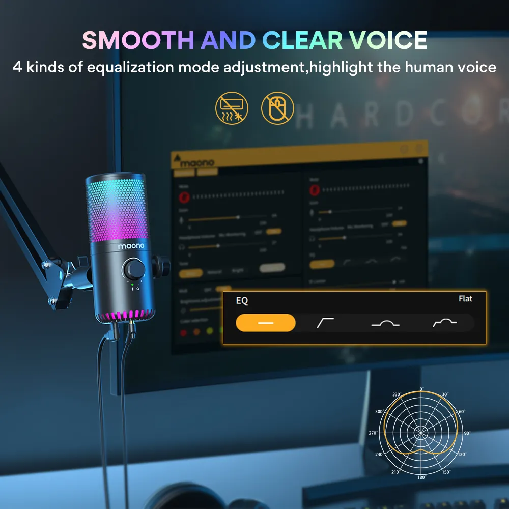 Ⅳ. Maono Link Yazılımı ile Güçlendirilmiş: Maono Link sayesinde RGB aydınlatmayı kişiselleştirin, EQ, limiter, kompresör ve daha fazlasını özelleştirerek sesiniz için daha fazla olasılığı ortaya çıkarın.