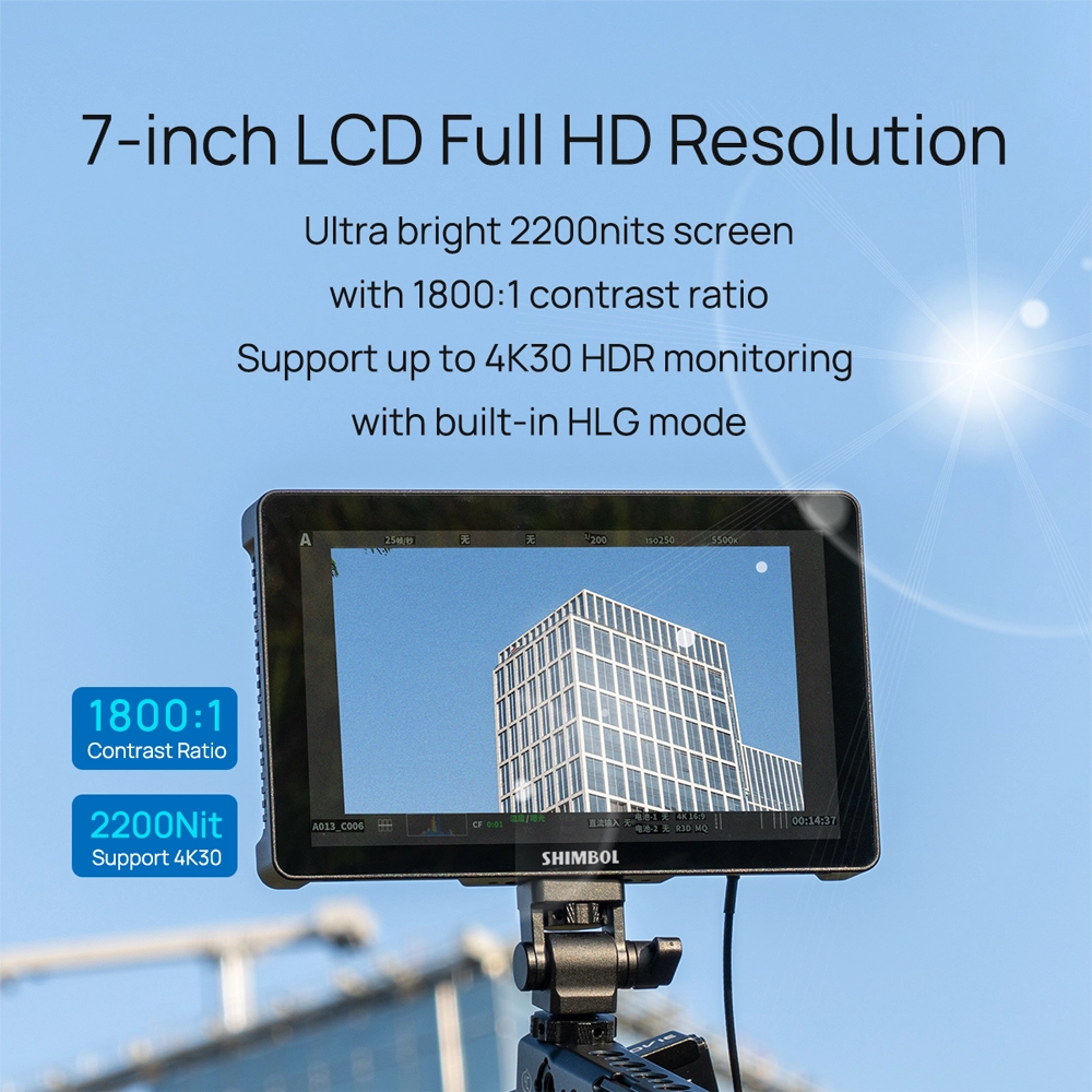 • 7″ 2200-nit FHD dokunmatik ekran – Gün ışığında net, 1800:1 kontrast, 170° geniş görüş açısı