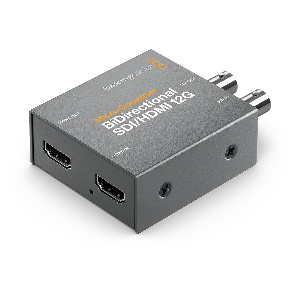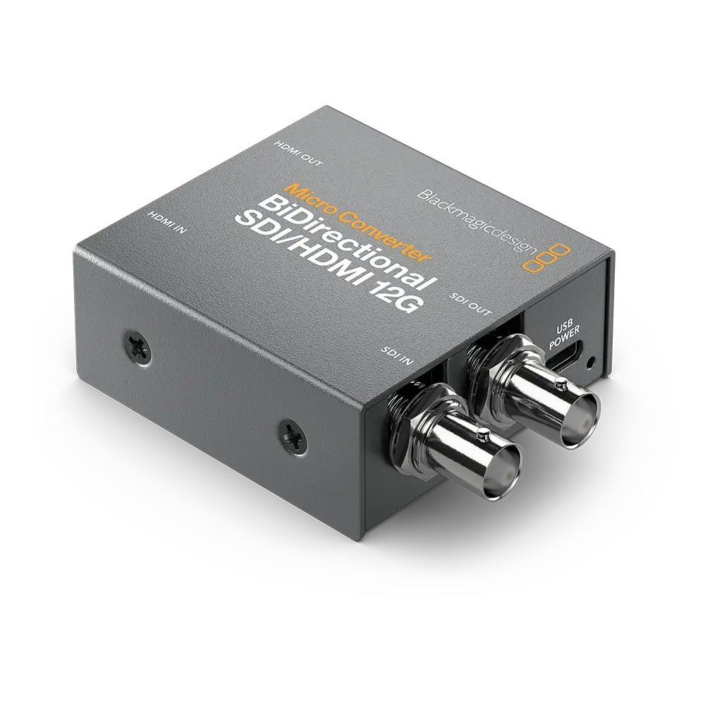 Küçük boyutlu Micro Converter BiDirectional SDI/HDMI 12G, HDMI timecode desteği, uzun kablo mesafelerinde SDI re-clocking özelliği, profesyonel yayın standartlarında (cine-style 48 fps dahil) geniş çözünürlük desteği ve hem HDMI hem SDI gömülü ses girişi/çıkışı ile birlikte gelir. Dayanıklı metal gövde, LED güç ve sinyal göstergeleri ve sağlam konektörlerle donatılmıştır. USB Type-C portu sayesinde, dönüştürücü kolayca büyük monitörler, laptoplar veya bilgisayarlardan güç alabilir ve aynı port üzerinden firmware güncellemeleri yapılabilir. Dönüştürücü, ayrı olarak temin edilen bir güç kaynağı ile çalışır.