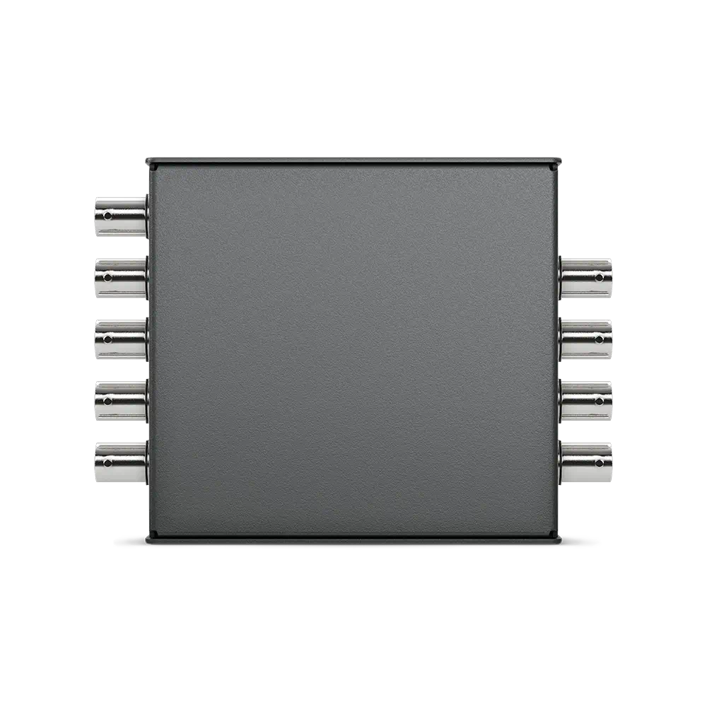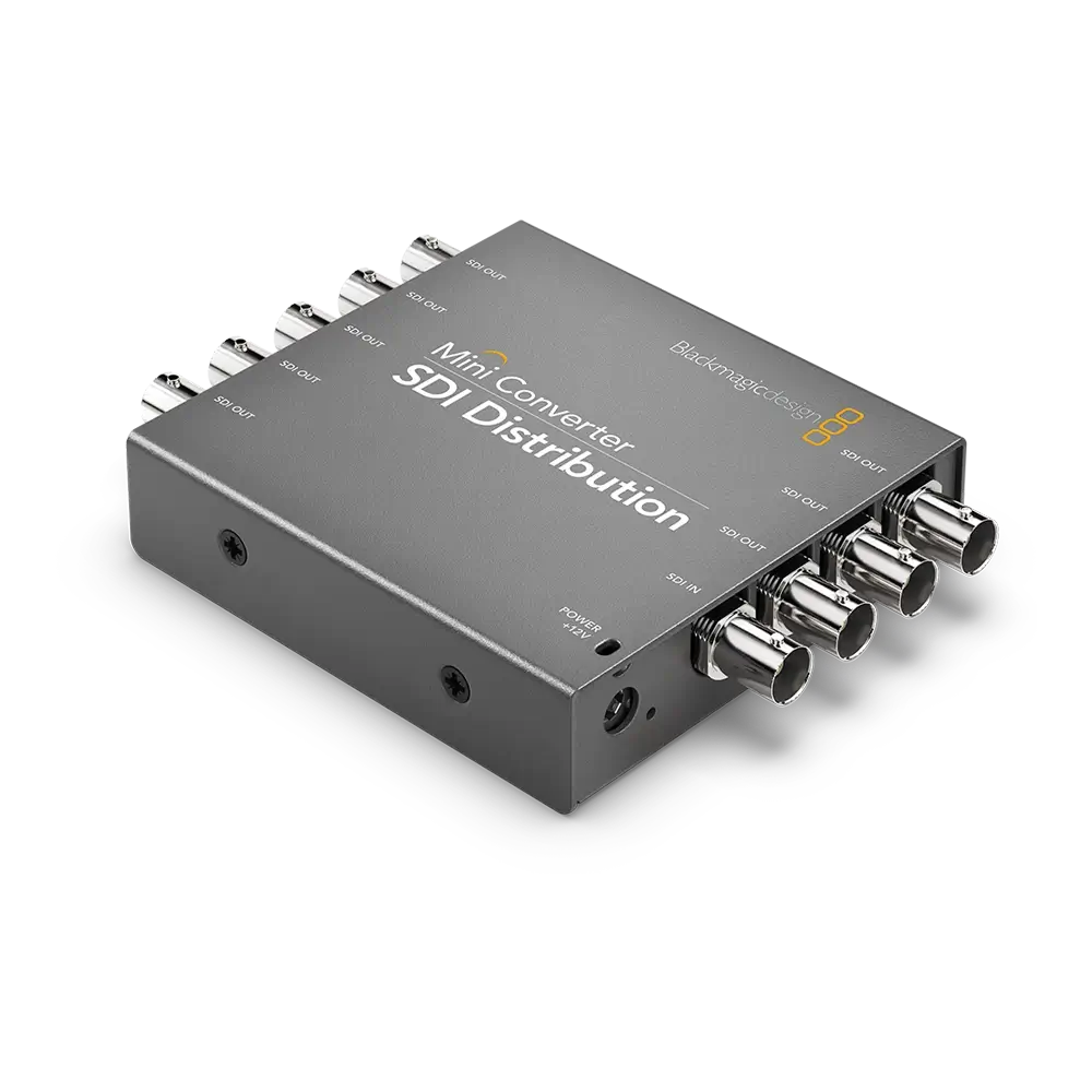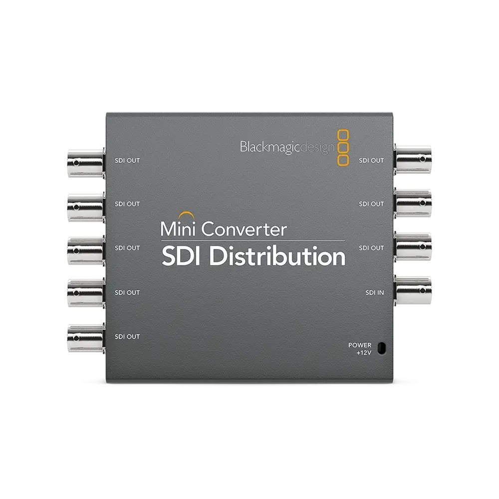Blackmagic Design Mini Converter SDI Distribution, SD-SDI, HD-SDI ve 3G-SDI sinyalleri için tasarlanmış 1’e 8 dağıtım amplifikatörüdür. Bu mini dönüştürücü, giriş sinyal türünü otomatik olarak algılar, yeniden saatler (re-clock) ve sekiz çıkışı, SDI video girişine otomatik olarak uyum sağlar. Bu cihaz, bir tesiste veya yayın kamyonunda SDI sinyallerini dağıtmanın uygun maliyetli bir yolunu temsil eder.
