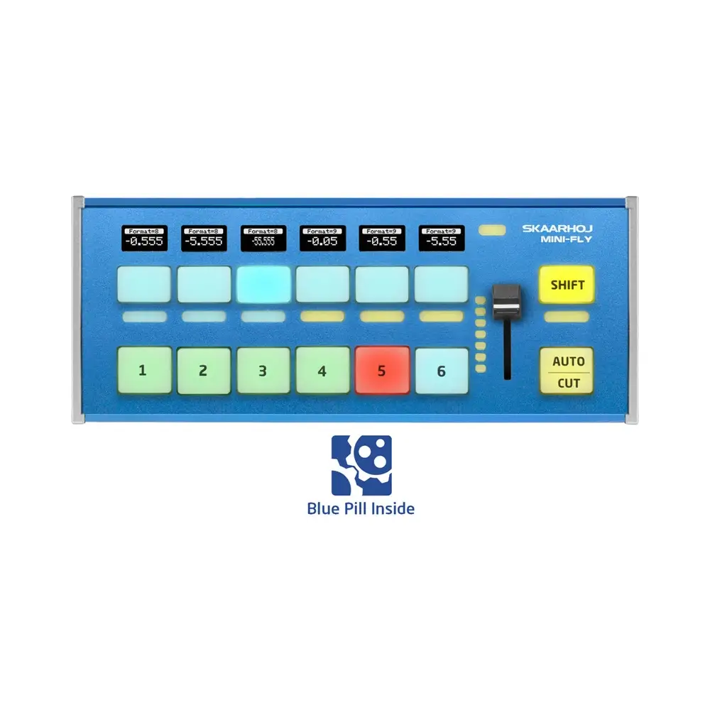 Mini Fly, canlı yayın geçişlerinde adeta bir İsviçre çakısı gibi tasarlanmıştır. Kompakt ve çok yönlü yapısıyla SKAARHOJ tarafından geliştirilen bu kontrol ünitesi, altı kameraya kadar canlı prodüksiyonlarda güçlü araçlar sunar. Arayüzünde OLED ekranlı altı programlanabilir 4-yönlü buton, RGB çok seviyeli LED ölçüm göstergeleri ve OLED ekranlı altı programlanabilir 4-yönlü ses butonu, LED bar’lı bir transition fader, adım göstergeli bir shift butonu ve auto/cut butonu bulunur. SKAARHOJ’un açık kaynaklı UniSketch OS yazılımıyla çalışan Mini Fly, belirli iş akışlarına göre özelleştirilebilir. PoE teknolojisi sayesinde sinyal ve güç tek bir kablo üzerinden iletilebilir.