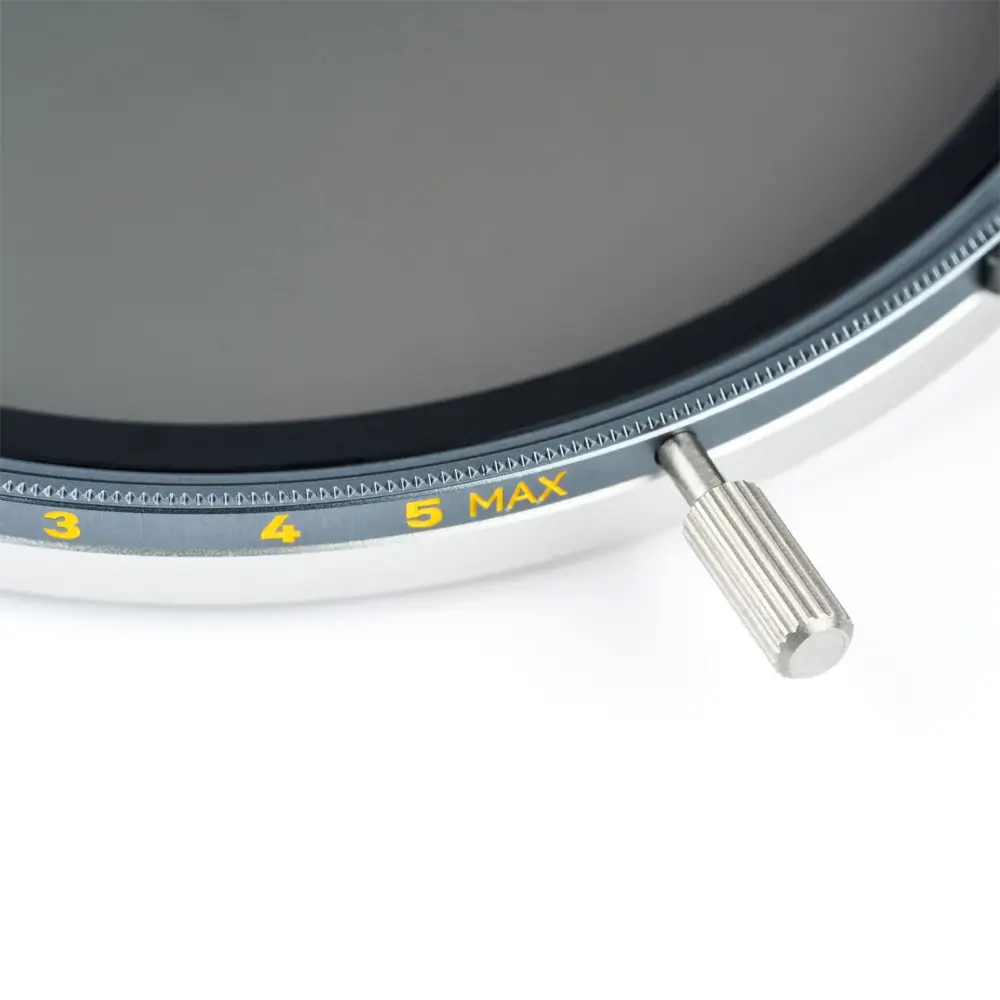 Filtre halkasının ön ve arka tarafında net durak işaretleri bulunur; kamera arkasında, rig üzerinde veya dar kurulumlarda ND seviyenizi hızlıca kontrol edebilirsiniz. -