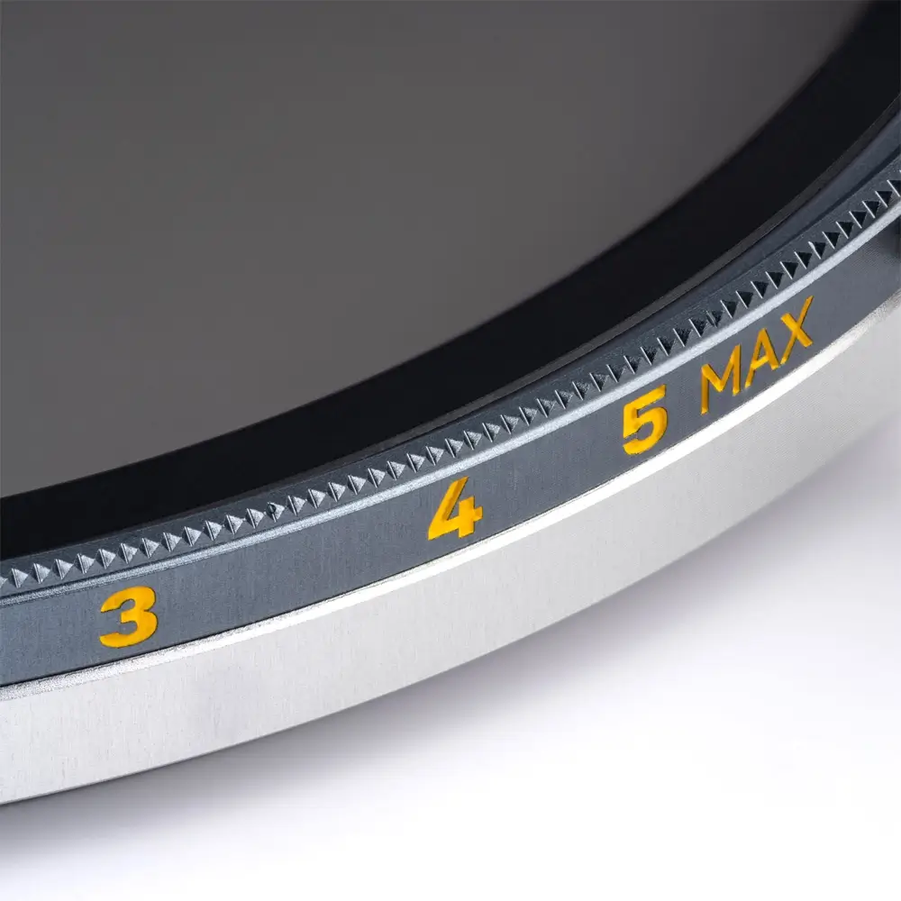 - Dahili Sert Durdurucularla Sorunsuz Geçiş: Filtre, akıcı bir ND geçişi ve 1 ile 5 stop’ta yerleşik sert durdurucular sunar. Bu durdurucular, aşırı dönmeyi önleyerek değişken ND filtrelerinde görülen o meşhur X deseni (çapraz polarizasyon) kusurunu tamamen ortadan kaldırır.