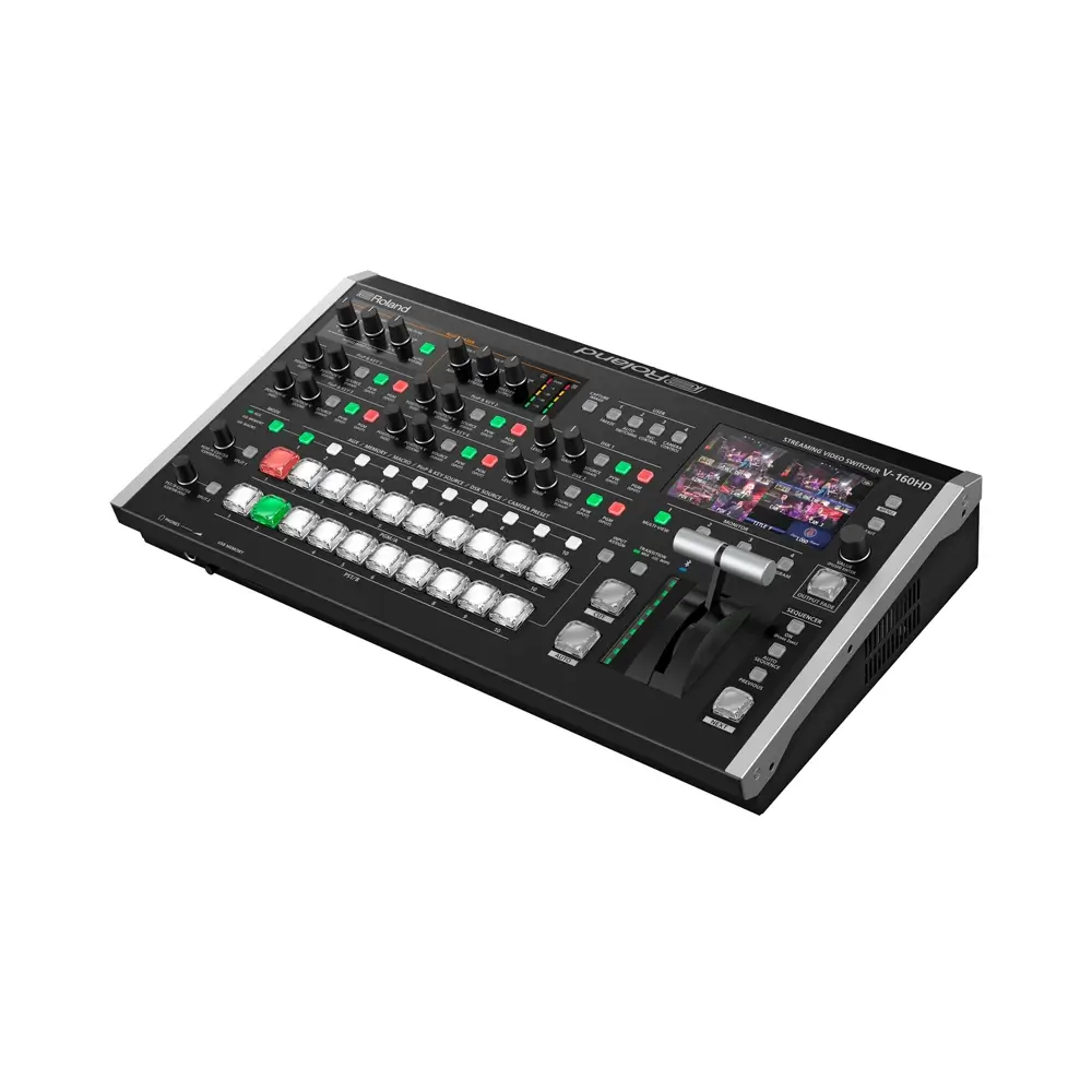 Yüksek çözünürlüklü video yayınlarını aynı anda giriş, çıkış ve canlı yayın ile iletmek için Roland’ın V-160HD SDI/HDMI Streaming Video Switcher’ını kullanın. Bu çok formatlı hibrit video switcher, sekiz HDMI ve sekiz 3G-SDI video kaynağını almanıza, bunları değiştirip efektler eklemenize ve tutarlı şekilde ekranlara, projeksiyon cihazlarına, kayıt birimlerine ve USB-C üzerinden canlı yayın uygulamalarına iletmenize olanak tanır.