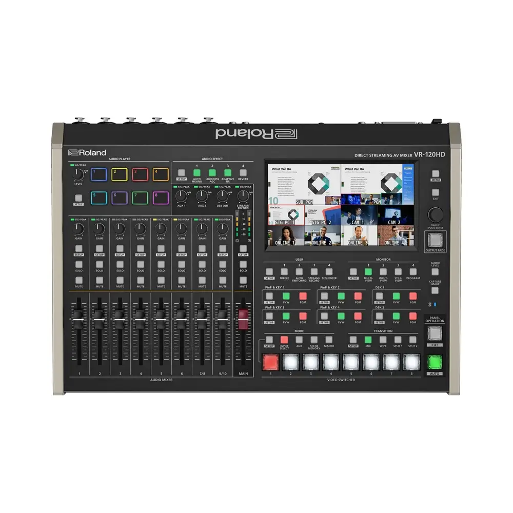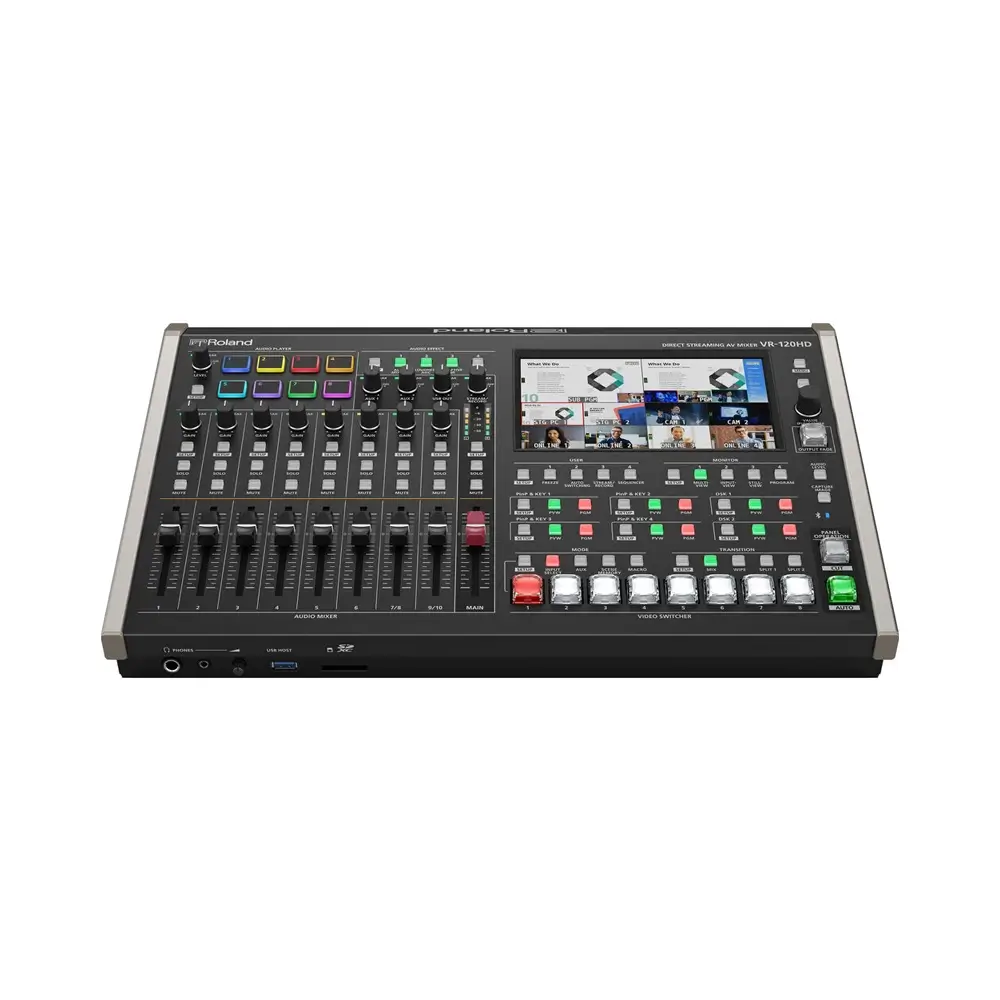 Video anahtarlayıcı ve ses mikserinin gelişmiş işlevlerini bir araya getiren taşınabilir VR-120HD, canlı okul etkinlikleri, ibadethaneler, belediye toplantıları, kurumsal etkinlikler, konserler ve diğer canlı performans mekanları için idealdir. Anahtarlayıcı, Facebook ve Twitch gibi popüler çevrimiçi platformlara aynı anda iki canlı yayını destekler.