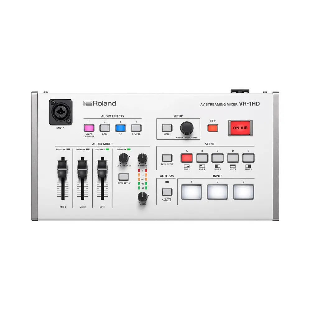 VR-1HD, üç “sorunsuz” HDMI girişi ile gelir ve her biri farklı HD ve bilgisayar tabanlı video çözünürlüklerini destekler. Bu sayede kameralar, sunumlar, oyun görüntüleri hatta akıllı telefonlar ve tabletler gibi çeşitli kaynakları bağlayabilir, geçiş yapabilir ve yayınlayabilirsiniz. Bu kaynaklardan gelen ses, iki stüdyo kalitesinde XLR mikrofon girişi ve özel line girişi ile harmanlanabilir. Üstelik VR-1HD, canlı yayın için tasarlandığından, üstteki mikrofon girişi ve kontrol düğmeleri sayesinde eller serbest ve kulaklıksız yayın yapabilirsiniz.
