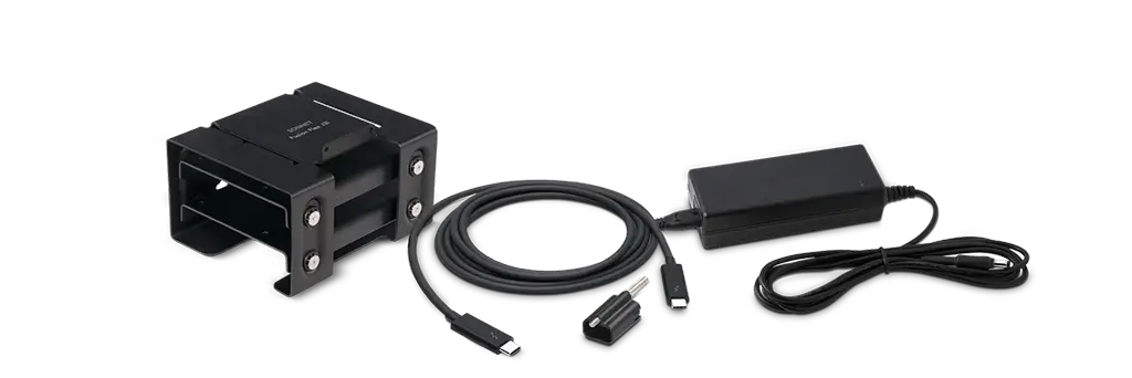 Solo10G Thunderbolt Adaptörü ve Echo 20 Thunderbolt 4 SuperDock ile birlikte gelen Thunderbolt 4 kablolarını güvenli şekilde sabitlemek için tasarlanmıştır.