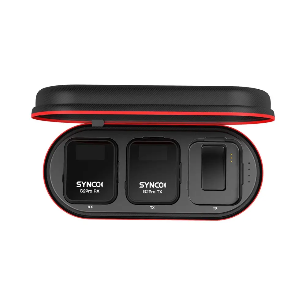 SYNCO G2 Pro, 656 ft / 200 m (LOS) menzile sahip uzun menzilli bir kablosuz mikrofondur. Orijinal G2’nin kompakt formunu ve özelliklerini korurken, tek tıkla gürültü azaltma, hem TX hem RX üzerinde kazanç kontrolü, güvenlik kanalı modu, evrensel dijital Type-C çıkışı ve dijital ses izleme gibi yenilikçi özellikler sunar. Kameralar, akıllı telefonlar, bilgisayarlar, hoparlörler ve daha fazlasıyla evrensel uyumluluğa sahiptir. Sağlanan şarj kutusu ile toplamda 24 saate kadar kayıt imkânı sunarak video üretimi, röportajlar ve canlı yayınlar için idealdir.