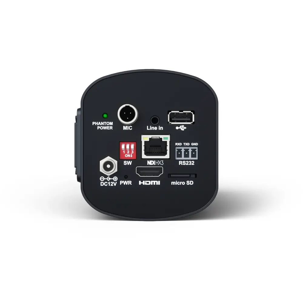 Kamera, HDMI, USB 2.0, NDI® HX3, SRT, RTSP, RTMP gibi çeşitli video çıkışları ve 3.5mm line-in ile mini XLR (phantom power destekli) ses girişleri sayesinde esnek entegrasyon imkânı sağlar. Ayrıca microSD kart ile yerel kayıt yapabilir ve PoE+ desteği ile tek kablo üzerinden güç ve veri iletimi yapılarak kurulum kolaylığı sunar.