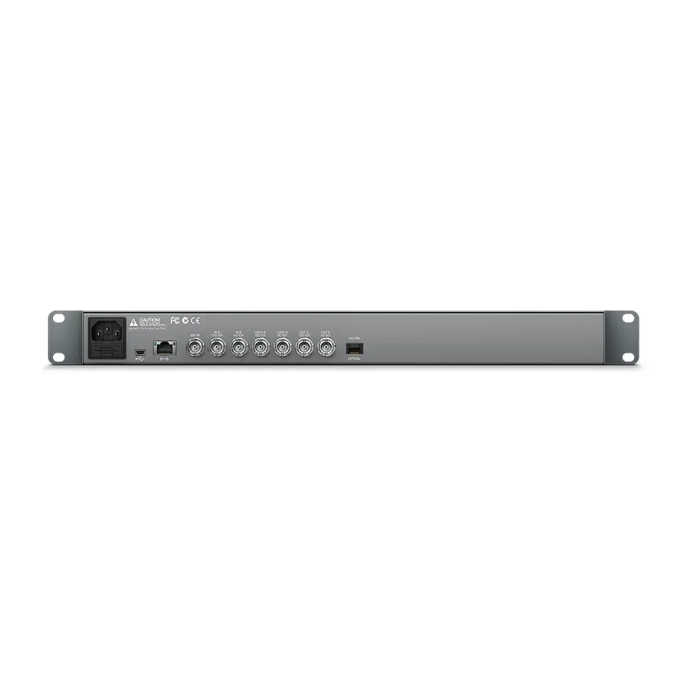 SDI Video Girişleri 1x BNC (IN B) – 10-bit SD, HD, 2K, 3G HD ve 6G Ultra HD otomatik geçiş. 4:2:2 3G ya da 6G UHD için çift bağlantılı giriş olarak kullanılabilir. SDI Video Giriş Döngüleri 1x BNC (IN B Döngü) – Yeniden saat ayarlı, 10-bit SD, HD, 2K, 3 Gb/s HD, 6G Ultra HD otomatik geçiş. SDI Video Çıkışları 1x BNC (OUT B) – 10-bit SD, HD, 2K, 3G HD A ve B seviyeleri ve 6G Ultra HD otomatik geçiş. 4:2:2 3G ya da 6G Ultra HD için çift bağlantılı çıkış olarak kullanılabilir. Quad SDI Video Çıkışları |