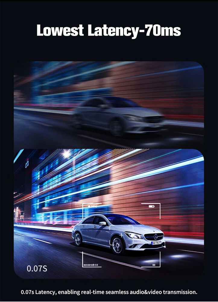 • 0,07 s ultra-düşük gecikme – gerçek zamanlı FHD video + ses, canlı yayın ve fokus çekimi için ideal