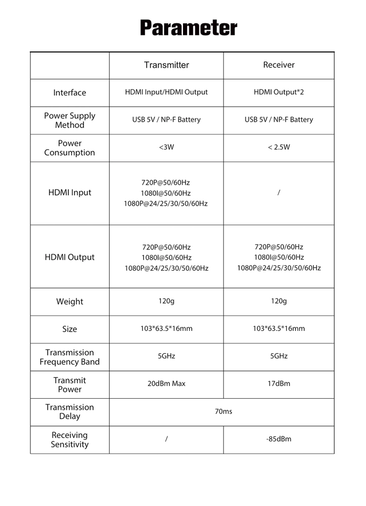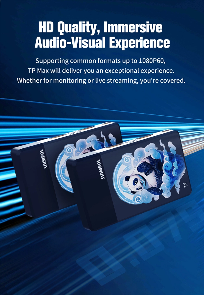 TP serisi; Gimbal, aynasız veya DSLR kamera sisteminize 1080p60’a kadar kablosuz video iletimi ekleyin, Shimbol’un hafif TP Max 1000′ HDMI Kablosuz İletim Sistemi ile. Verici HDMI girişi sağlar ve serbest 5 GHz kablosuz bandını kullanarak alıcıya 1000′ mesafeye kadar görüş hattı üzerinden düşük 70 ms gecikmeli iletim yapar. Ayrıca HDMI loop-through çıkışı da mevcuttur. Alıcı, görüntüyü bir monitörde izlemek veya sinyali bir switchere göndermek için iki HDMI çıkışına sahiptir.