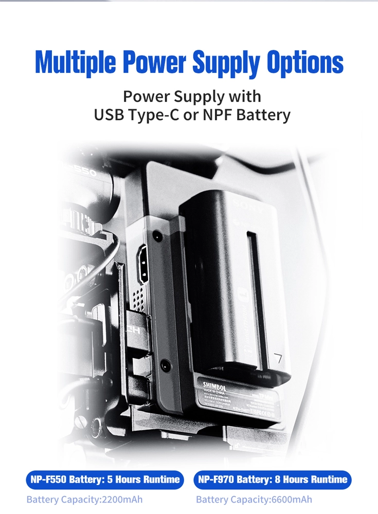 • Fansız sessizlik ve esnek güç – USB-C veya NP-F batarya (5–8 saat kullanım süresi)