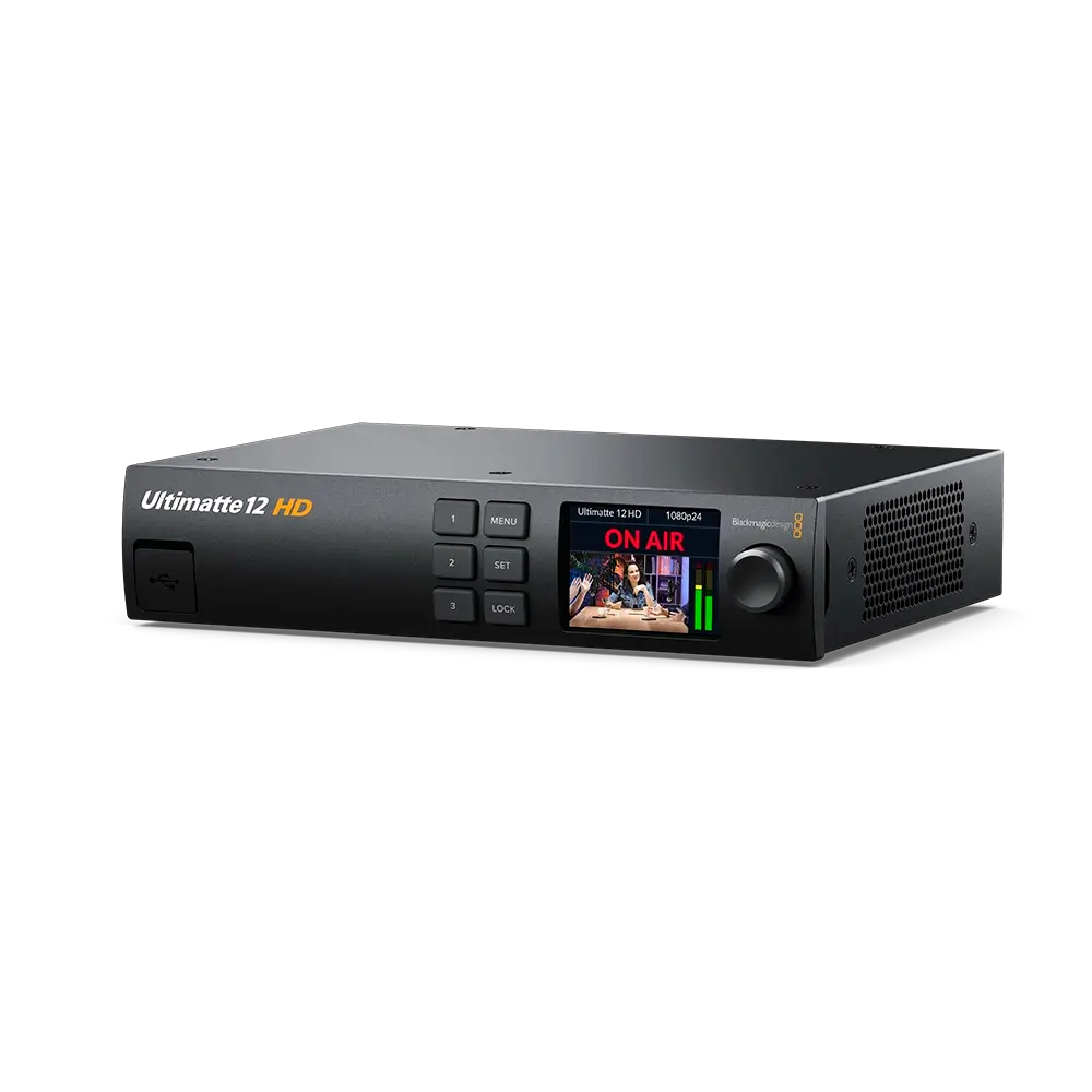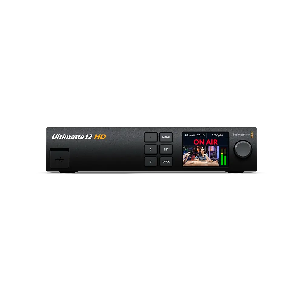 Ultimatte 12 HD, HD çözünürlükte çalışır ve alt-piksel işleme sayesinde görüntü kalitesini artırır. Haber, spor ve diğer prodüksiyon türleri için tasarlanmış olan bu çok yönlü ünite, gerçekçi artırılmış gerçeklik katmanları ve tek dokunuşla otomatik keying özellikleri sunar. HD model, 1080p60 çözünürlüğe kadar destek verir ve çeşitli medya formatlarını kullanabilir. Bu işlemci, macOS ve Windows için indirilebilen Ultimatte Yazılımı ile çalışır ve ayrıca ayrı olarak temin edilebilen Ultimatte Smart Remote 4 ile de kontrol edilebilir.