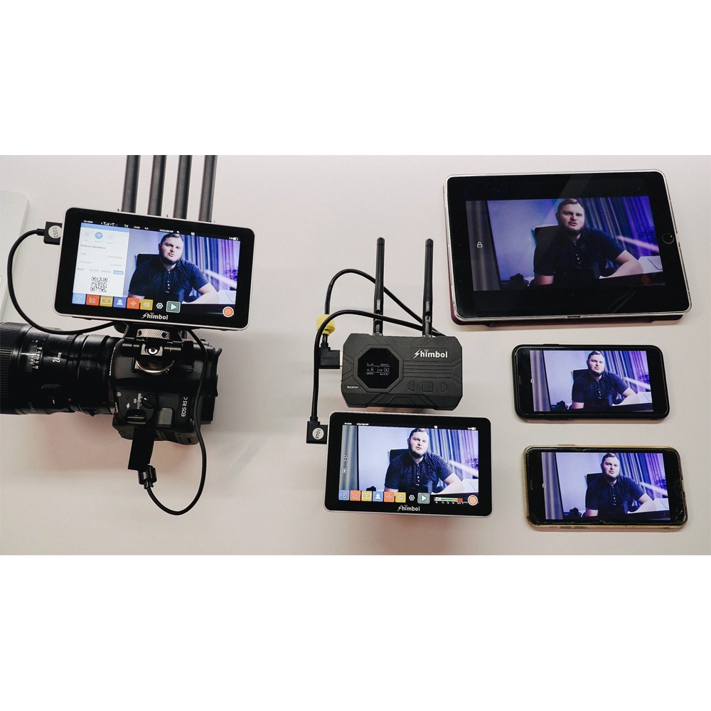 Bu cihaz, sadece bir monitör değil, aynı zamanda kablosuz verici veya alıcı olarak da kullanılabilir. 2.4G + 5G çift bant kablosuz aktarım teknolojisi sayesinde 984 ft / 300 m görüş hattı mesafesinde, parazitsiz ve yüksek kaliteli video iletimi sunar. Ayrıca iPhone veya iPad üzerinden Shimbol uygulaması ile kablosuz video izleme özelliği de bulunur.